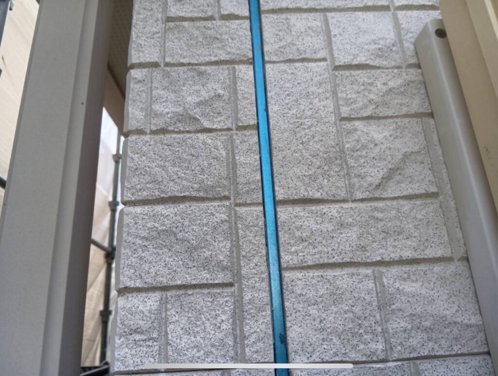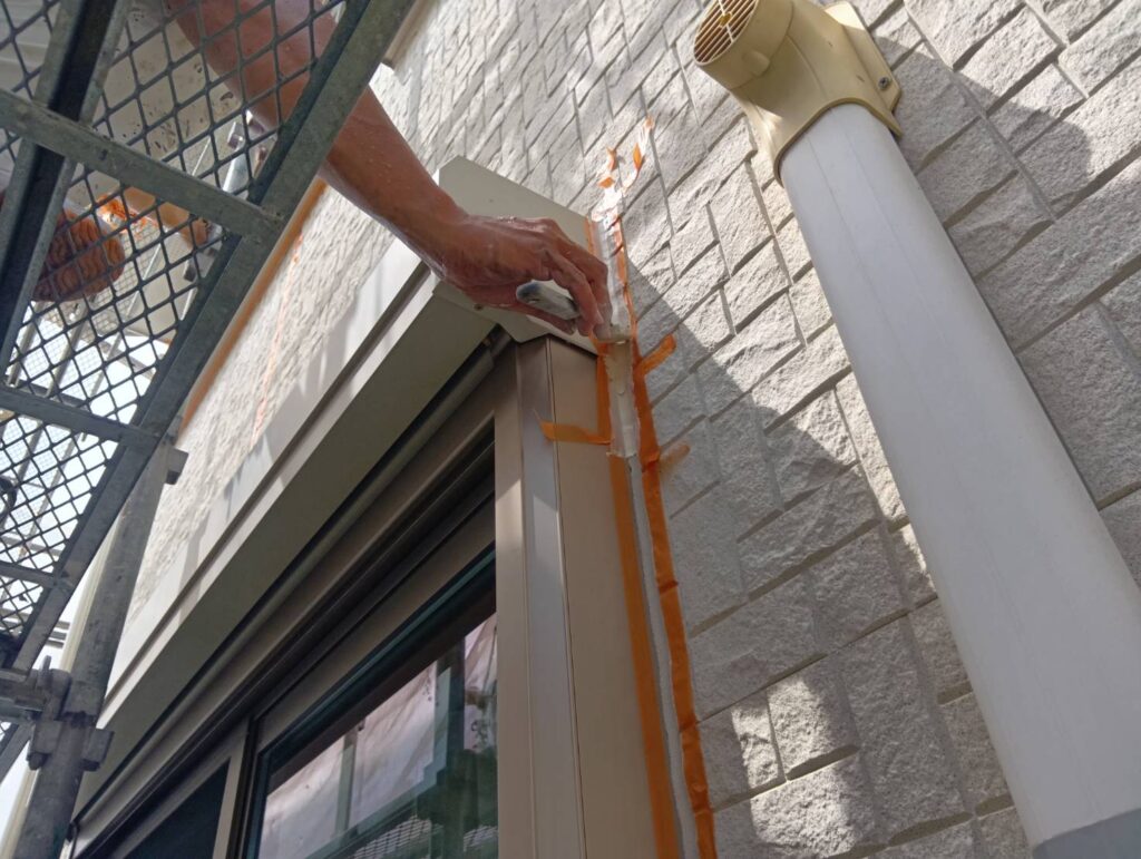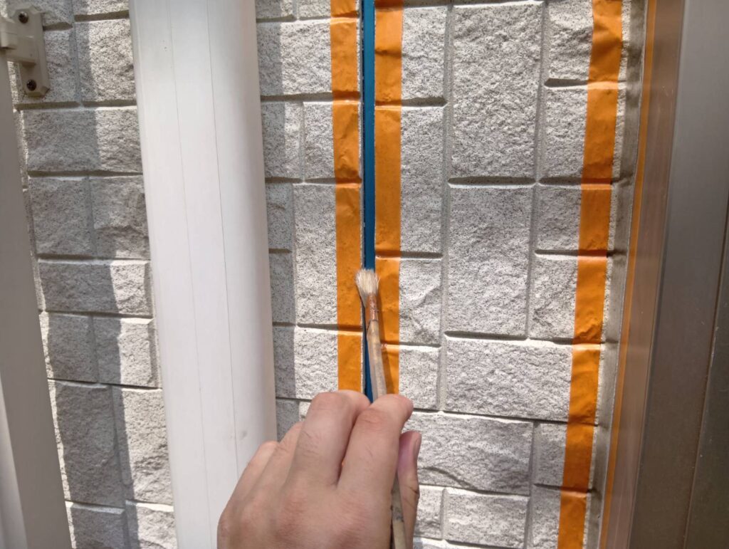 シーリングを充填するときに外壁にはみ出さないようにマスキングテープで養生をしていきます。その後、プライマーを塗っていきます。